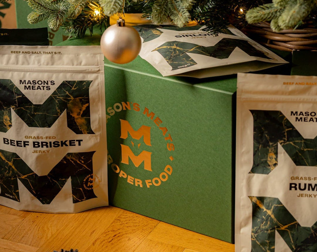The Lean & Clean Box is the ideal gift for your loved ones who train hard, work hard, and want fuel that keeps up. High protein, lower fat, no junk — just pure beef and salt.Lean cuts, crisp texture and maximum flavour. Perfect for meal-preppers, macro-trackers or anyone who wants steak-level nutrition in a bag.Housed in our premium, heavyweight matte-finish box with gold foil detailing. Shelf-stable, no refrigeration needed, and ready to go right under the tree.
